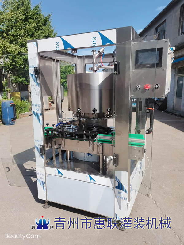 12头回转式白酒定量灌装机-带定口适用于各种酒水,不起沫饮料,调味品,药品及各种腐蚀品的灌装,适用瓶型广泛,采用量杯式定量,灌装机,液体沿瓶壁下流,有效改善了灌装时冲击起沫问题,解决外溢问题。