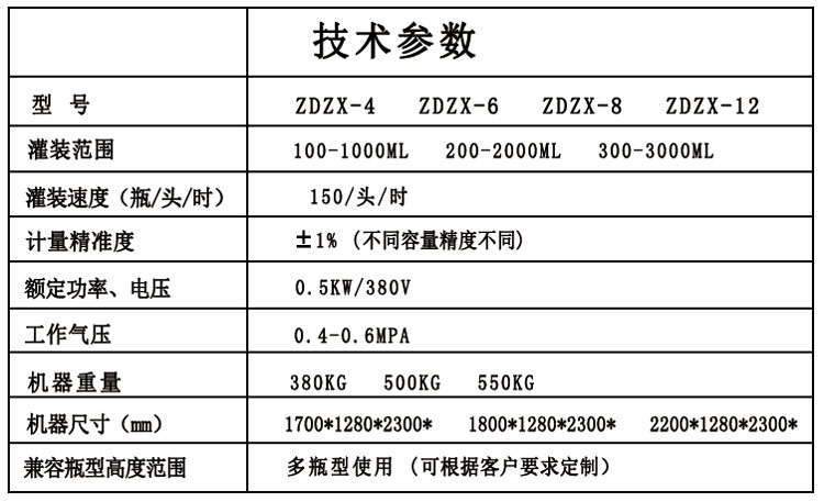 | 灌装精度 | ±0.5% | ±0.5% | ±0.5% | ±0.5% | ±0.5% |